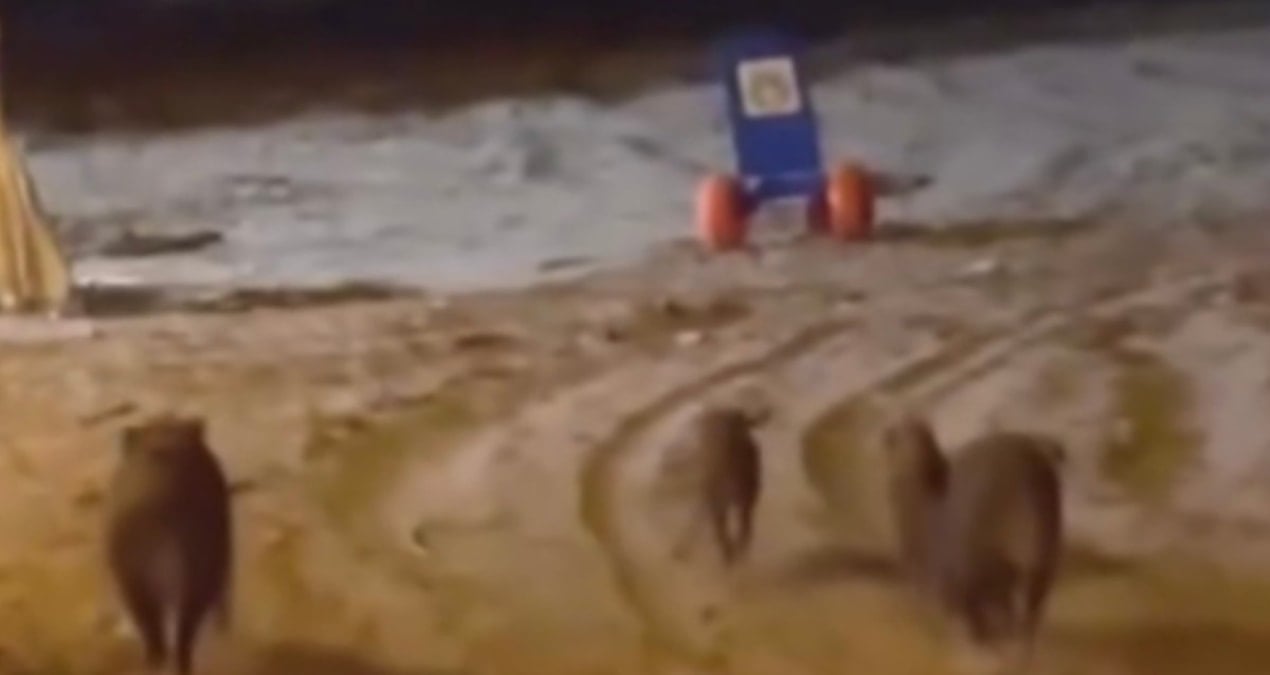 Bartın’ın İnkumu tatil beldesinde yiyecek arayan yaban domuzları sahile indi. Domuzların denize girerek su içtiği anlar cep telefonuyla görüntülendi.